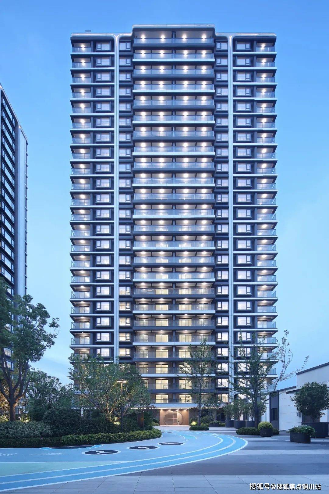 侧立面上设计了月亮盈亏的装饰纹,紧扣团圆美好的设计理念。甚至为南向楼体设计了月牙亮化纹路,夜晚两栋楼组合成满月,美观又独特!